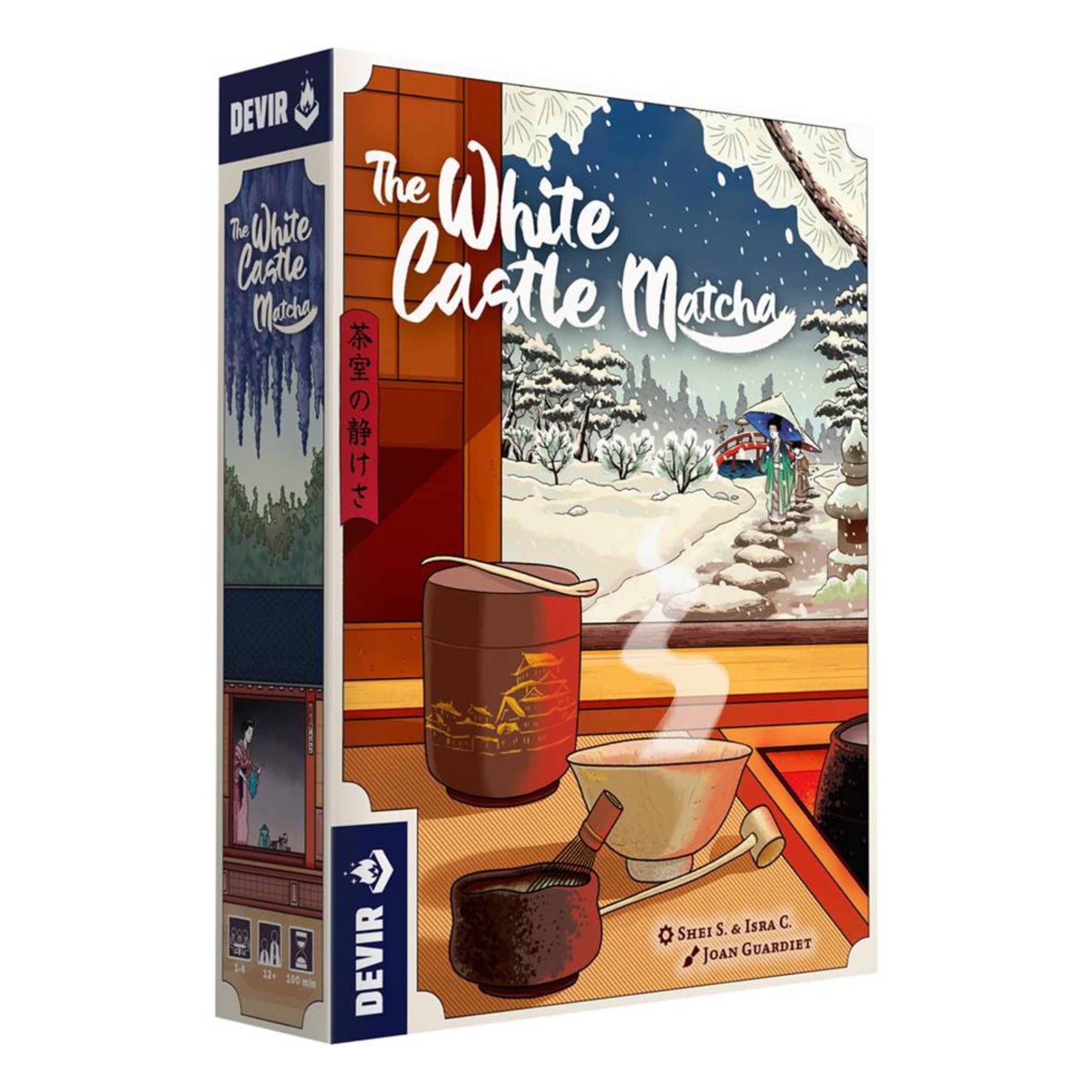„The White Castle: Matcha“ wurde von Sheila Santos und Israel Cendrero (dem als Llama Dice bekannten Duo, das auch „The Red Cathedral “ verfasst hat) entworfen und enthält stimmungsvolle Illustrationen von Joan Guardiet. Es ist die erste Erweiterung für „The White Castle“ . Diese Erweiterung umfasst eine zentrale Spielbretterweiterung, eine grüne Brücke, fünf grüne Würfel, sechzehn Münzen, sechsundzwanzig Spielsteine, vier persönliche Spielbretter, zwanzig Geisha-Figuren und neununddreißig Karten.