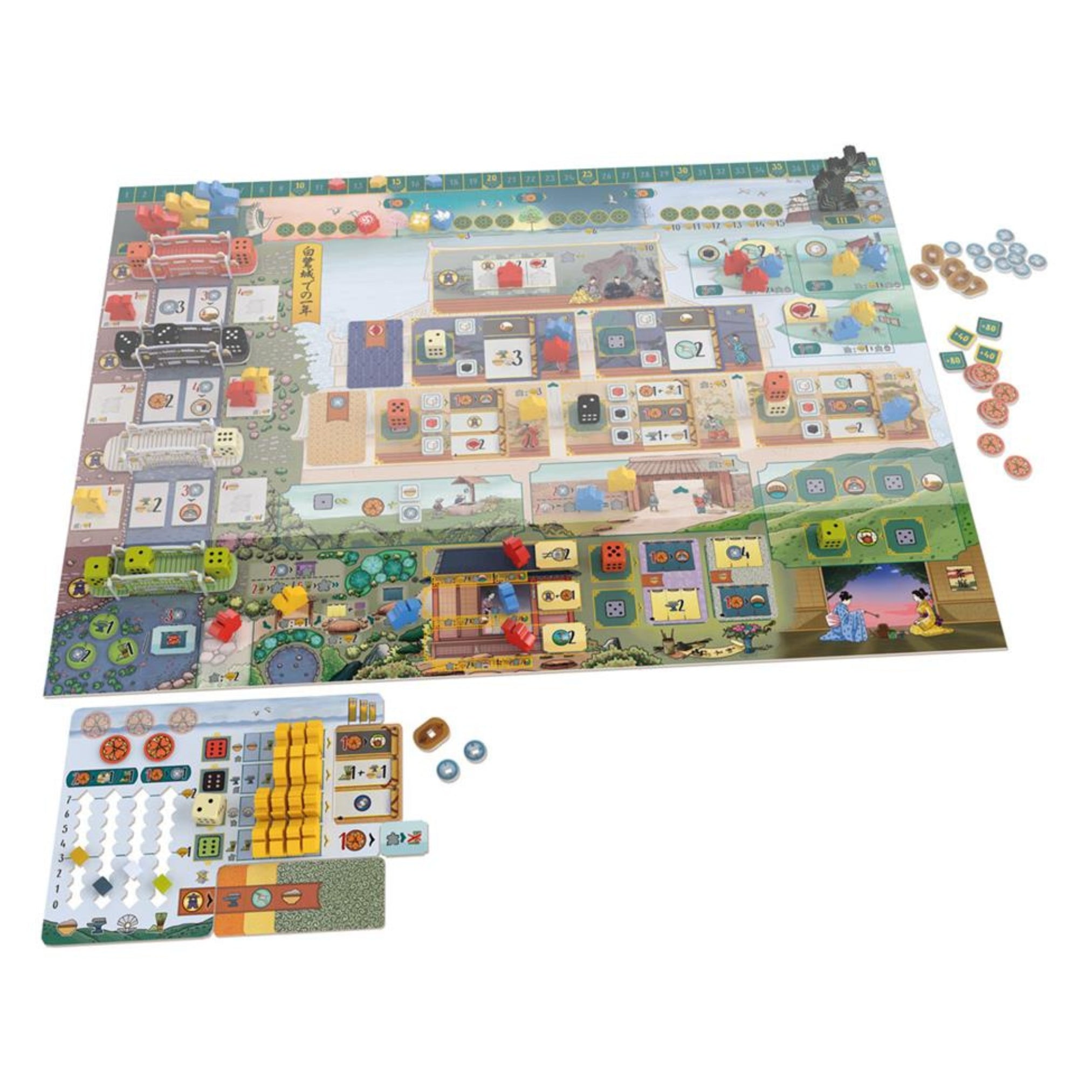 Im Laufe des Spiels erhöht die gute Platzierung Ihrer Clanmitglieder im Chashitsu (Teehaus) Ihren Einfluss am Himeji-Hof. Doch das ist noch nicht alles: Sie erhalten jede Runde eine zusätzliche Aktion, wodurch sich die Gesamtzahl der verfügbaren Aktionen im Spiel von neun auf zwölf erhöht. Sind Sie bereit, zur Burg Himeji zurückzukehren und die Feinheiten der Teezeremonie zu meistern?
